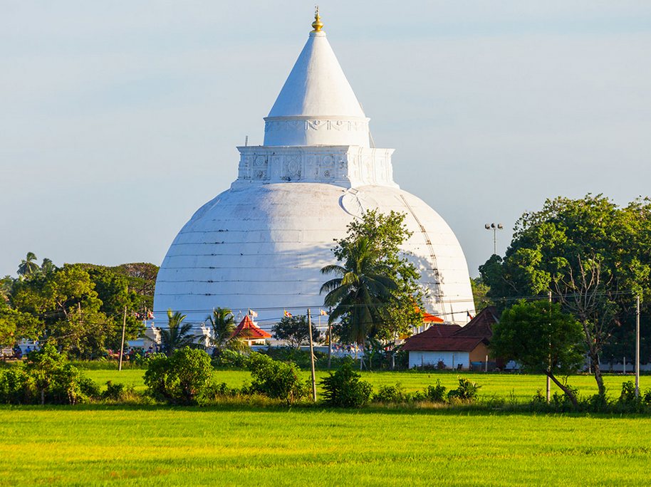 The 55m height white Dagaba looming between Thissa town and the Tissa Wewa was built around 200BC by the king Kawantissa